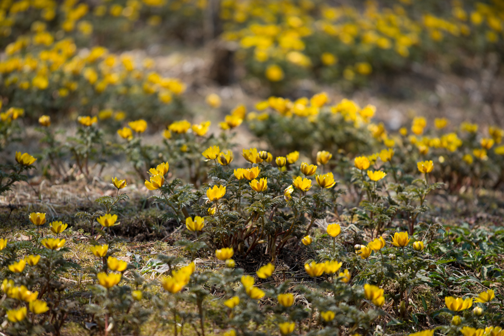 今日は青空、日差しが暖かく、我が家の福寿草も花を開いていました。